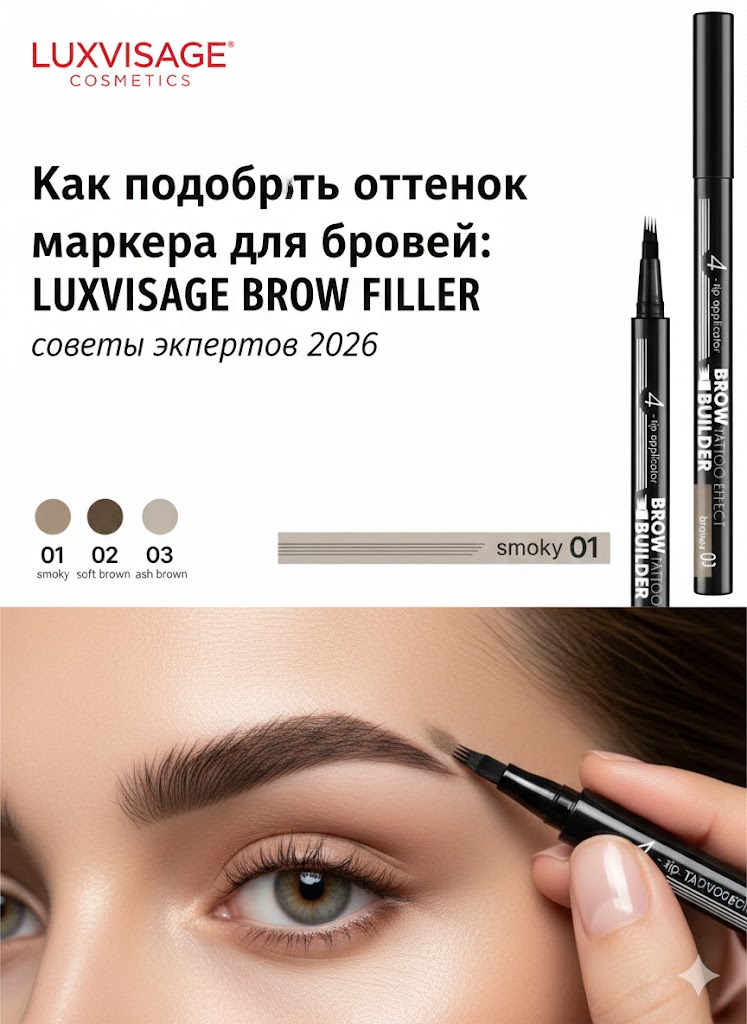 Для того чтобы маркер LUXVISAGE BROW FILLER выглядел максимально естественно, давайте подберем оттенок, исходя из вашего цвета волос. В тренде «дорогой натуральный вид», поэтому важно избегать слишком темных или рыжих бровей.
