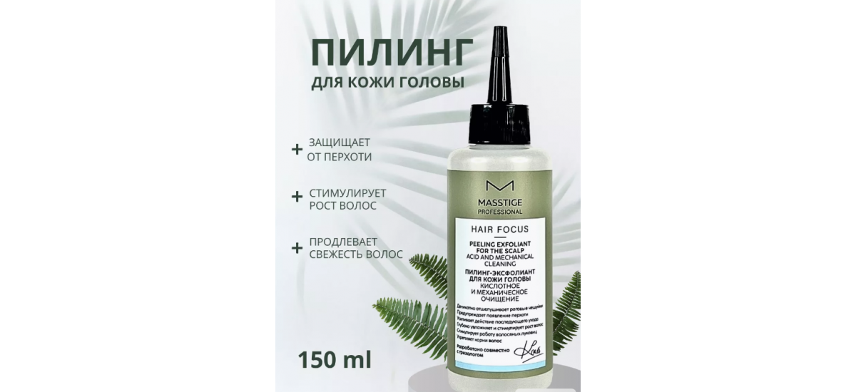 нанесите средство на влажную кожу головы по проборам. Мягкими движениями помассируйте кожу головы. Оставьте действовать на 2-3 минуты. Обильно смойте водой. В заключении процедуры вымойте голову шампунем. Пилинг кожи головы предупреждает появление перхоти, избавляет от жирности и насыщает слои эпидермиса питательными элементами. Уникальные рецептуры разработаны под контролем трихолога на основе инновационных компонентов с доказанной эффективностью действия. В нашем магазине вы найдете все новинки профессиональной линейки MASSTIGE PROFESSIONAL HAIR FOCUS (Мастиж).